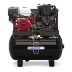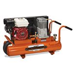 Note: All air tools are rated on an intermittent (start/stop) usage factor. Some intermittent tools, like an air nailer, may require specific PSI to properly function. Keep in mind that air tools such as grinders, sanders and sandblasters are considered continuous running tools and require a larger air compressor that provides higher CFM. Refer to specific air tool specifications for complete requirements. Tank Sizes of CompressorsAir compressors work primarily from air stored in the storage tank. As a result the amount/volume of compressed air a compressor will hold impacts how well certain tools will work. Additionally once the tank is filled, a larger tank compressor will not have to run as much to maintain the CFM's provided the compressor pump can produce more CFM's than you are using. In general if you will be using air tools that require continuous air, than you should consider a larger tank. If you are planning to use air tools that will only require intermittent running, your compressor can have a smaller tank size. Having a large enough tank and pump that can produce enough CFM's for the tools you plan on running is important. A complete listing of air tool consumption is available on the Powermate web site - www.powermate.com. Tank Styles of CompressorsThe style of tank will depend on the type or power requirements of your compressor. Tank orientation will not effect performance, it is strictly an issue of floor space, overall compressor size and when applicable, portability. Portable compressors have several different tank styles. There are many different portable tank styles. Which one is right for you will depend on the power requirements of the tools you will be using (listed above) and the type of portability that best fits your needs. ![]() ![]() ![]() ![]() ![]() ![]() ![]() ![]() Note: Refer to your specific compressor model for operating PSI and CFM's Stationary compressors are available with either a vertical or a horizontal tank. If the location of your compressor has limited floor space a vertical tank may be a better fit over a horizontal tank. ![]() ![]() ![]() Note: Refer to your specific compressor model for operating PSI and CFM's FAQ'sShould I buy a gas or electric powered compressor?Air compressors can be powered by either an electric motor or a gas engine. Which one is right for you will depend on where you plan on using it. If you might need to use it where electric power will not be available then the convenience of a gas powered compressor may be the right choice. While gas powered compressors offer flexibility to where they are used they are not designed to be used indoors, they require overall more maintenance (oil changes, refilling with gas) and are higher priced than compressors with the same horsepower electric motors. I have seen Single Stage and Two Stage compressors, what's the difference?Single Stage and Two Stage is in reference to the compressor pump type. The pump takes the ambient air and compresses it into the tank. In general Single Stage pumps can deliver up to 155 PSI and have CFM ratings shown below 100 PSI. Single Stage pumps compress the air directly into the tank. Two Stage pumps can deliver 175 PSI or more and have CFM ratings at 100 PSI and above. Two Stage pumps compress the air in the first stage then pass it to the second stage where it is compressed again. Determining your air requirements will determine if you need a Single Stage or Two Stage pump. How large of a tank do I need?Tank sizes are measured in gallons. In general, if your air tool requires short, intermittent bursts of air (nailer/stapler) then a smaller tank size can be used. When using air tools that run for longer periods of time (air sander, grinder, etc) then a larger tank will be required. Compressors will have a deliverable CFM at a specific PSI rating. These ratings are based on the engine/motor horsepower, pump capacity and tank size. We have already calculated the CFM @ PSI of our compressors, you just need to determine what air tools you will be powering as discussed above. |