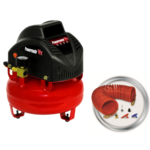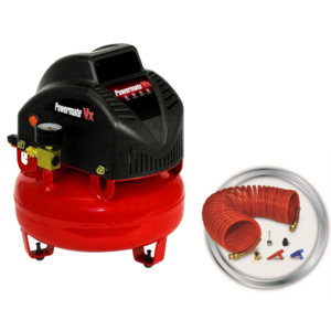 This small and lightweight compressor works great for projects around the house such as inflating bike tires, beach toys, sports balls and rafts, blow cleaning, air brushing and light duty nailing and stapling. Includes 5pc accessory kit and 25ft coil hose.