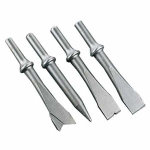 Includes 4 chrome molybdenum steel chisels: punch, ripping chisel, cold chisel, and panel cutter. Use with Powermate air hammers 024-0075CT, 024-0075SP and P024-139SP.